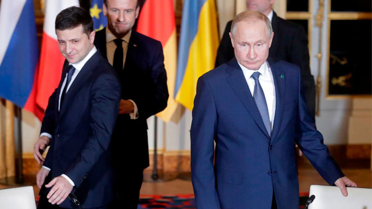 Путин и Зеленский во время встречи в нормандском формате. Фото: tass.ru