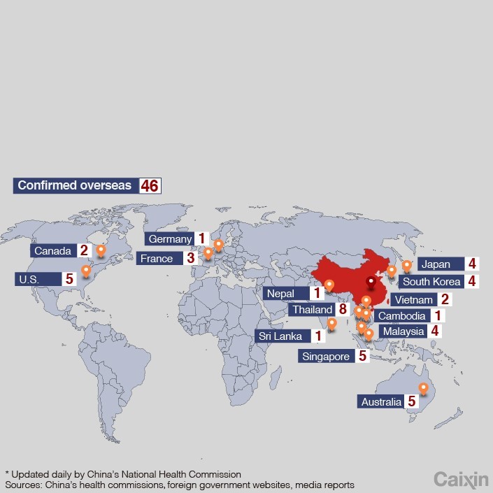 За пределами Китая обнаружили 37 заболевших - в США, Канаде, Франции, Южной Корее, Японии, Таиланде, Непале, Вьетнаме, Малайзии, Австралии, Сингапуре, Камбодже, Шри-Ланке, Непале, Германии.