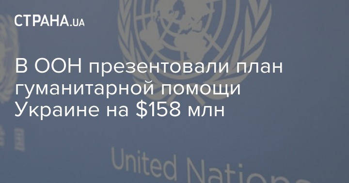 Представительство ООН в Украине представило план гуманитарной помощи для Украины на сумму $158 млн в 2020 году. План рассчитан на 2 миллиона украинцев, включает социальную и психологическую помощь пострадавшим в конфликте на Донбассе, а также ремонт школ и инфраструктурных объектов.