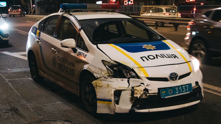 Автомобиль патрульной полиции Toyota Prius также пострадал. Фото: kiev.informator.ua