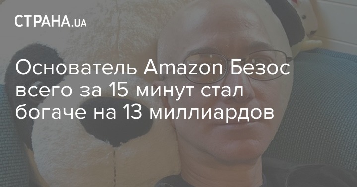Резкий роста акций Amazon на постмаркете позволил основателю компании Джеффу Безосу увеличить свое состояние на 13 миллиардов долларов всего за 15 минут. Об этом пишет  Bloomberg.