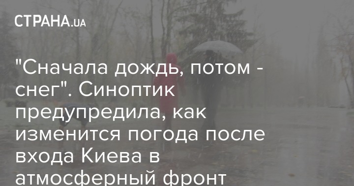 "Киев вошел в зону атмосферного фронта. Пока - дождь, дальше вероятный мокрый снег", - сообщила Наталья Диденко.