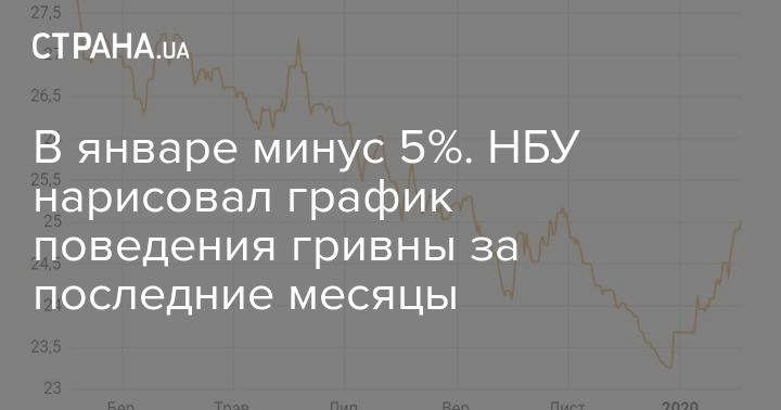 В пятницу, 31 января, Нацбанк Украины опубликовал обзор макроэкономических процессов и монетарной политики за январь 2020 года, согласно которому украинская национальная валюта подешевела по отношению к доллару США на 1 гривну 23 копейки, или 5,19% - с 23,69 до 24,92 грн/долл.