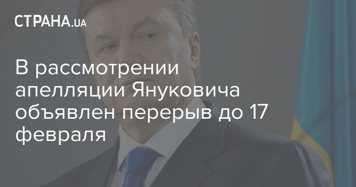 Киевский апелляционный суд объявил перерыв в рассмотрении жалобы адвокатов бывшего президента Украины Виктора Януковича на приговор по делу о государственной измене. Перерыв продлится до 17 февраля.