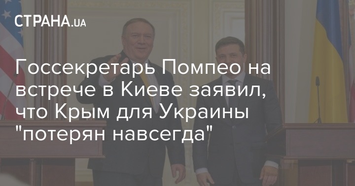 Госсекретарь США Майк Помпео на днях посетил Украину. Кроме президента Украины Владимира Зеленского он встретился с главами МИДа, Минобороны и украинскими активистам. На одной из закрытых встреч в Киеве сказал, что Крым для Украины потерян навсегда.