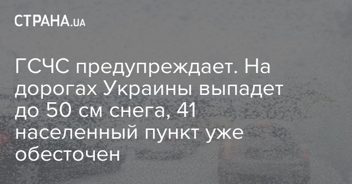 Сообщается, что в среду, 5 февраля будет сильный снегопад (прирост снежного покрова 10-20 см, в горах 35-40 см), порывы ветра достигнут 15-20 м/с (в горах 25 м/с), метель, на дорогах снежные заносы, гололедица, в Карпатах сильный снег (прирост снежного покрова 30-50 см). В ночь на 5 февраля в результате осложнения погодных условий (осадки и порывы ветра) обесточен 41 населенный пункт