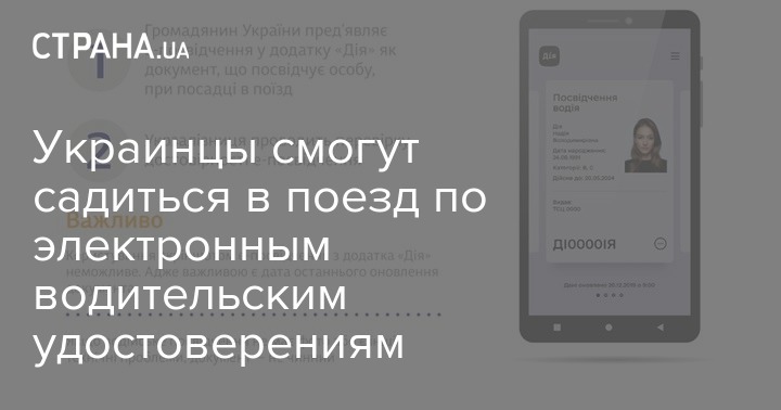 После презентации государственного мобильного приложения "Дія" ("Действие") Укрзализныця заявила, что украинцы смогут совершать посадку в поезд на основании электронного водительского удостоверения.