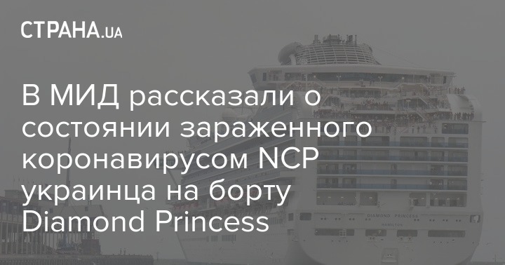 Зараженный китайским коронавирусом NCP украинец на лайнере Diamond Princess чувствует себя хорошо. Но ближайшее время, 14 дней, он будет под наблюдением медиков. Однако явно видимых симптомов заболевания у него пока нет.