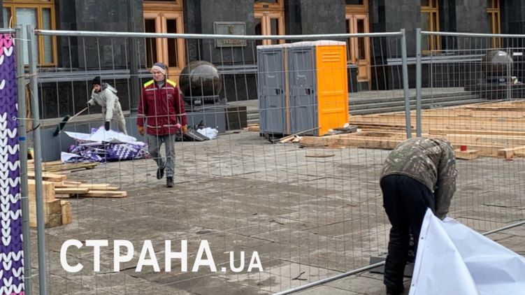 Каток перед ОП начали строить спустя пару дней после акции националистов во время саммита "Нормандской четверки" в Париже, на том месте, где они митинговали.