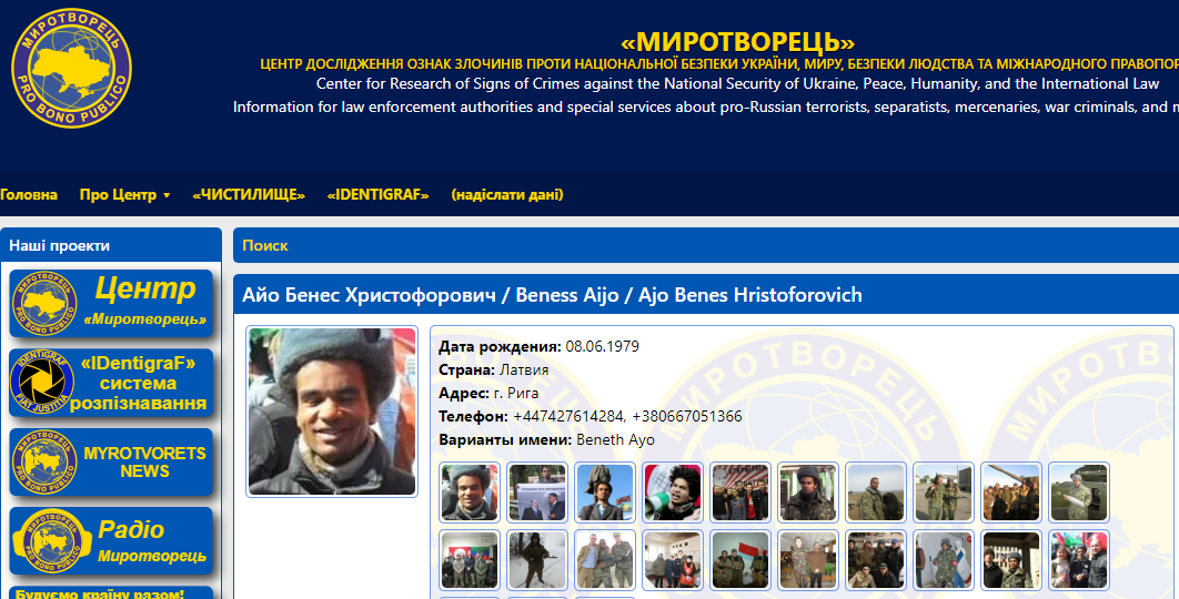 В России был задержан темнокожий гражданин Латвии Бенес Айо, который воевал на стороне сепаратистов Донбасса. Он также известен по прозвищу "Черный Ленин" за свои политические взгляды.