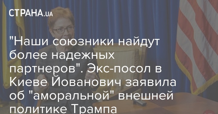 Бывший посол США в Украине Мари Йованович предупредила, что США начали проводить "аморальную" внешнюю политику, которая "заменяет доверие угрозами, страхом и смятением". По ее мнению, управление внешней политикой администрации Трампа рискует оттолкнуть союзников и направить их в объятия других партнеров, которых они считают более надежными.