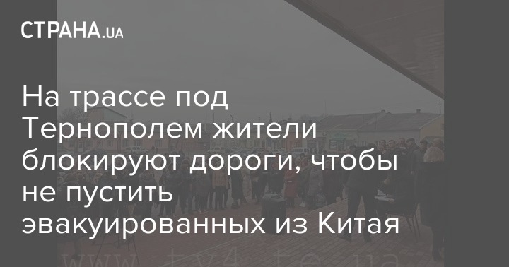 Об этом передает издание Тернополяны. С таким протестом местные жители вышли на дороги после того, как появилась информация о планах разместить 98 человек, эвакуированных из Китая, в санаторий "Медоборы" села Конопкивка возле Микулянцев. Украинцев должны привезти 20 февраля.