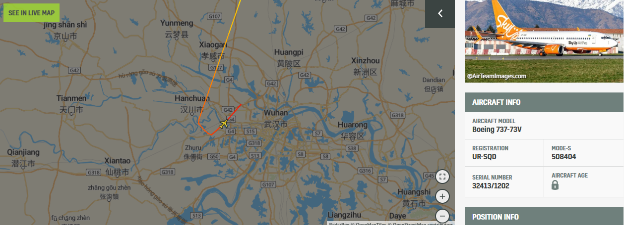 19:15 Борт SkyUp вылетел из Уханя.