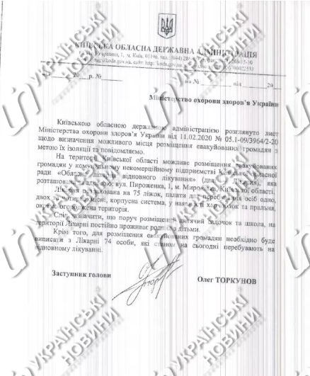 12:00 Больница в Мироновке Киевской области согласилась разместить эвакуированных из Уханя украинцев. Повезут ли прибывших в Мироновку на карантин - не ясно. Пока это лишь предложения для МОЗа. Тем более, что для размещения эвакуированных необходимо будет выписать из больницы 74 граждан, которые на данный момент проходят лечение.
