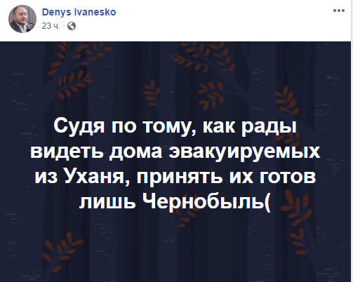 13:30 "Судя по тому, как рады видеть дома эвакуируемых из Уханя, принять их готов лишь Чернобыль" - пишут в сети