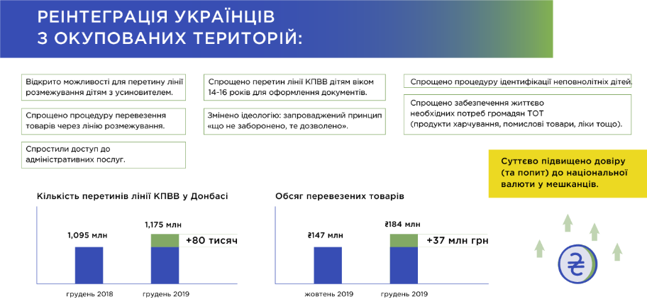 В число достижений попали сокращение очередей при устройстве в детские сады; перемены в школьном образовании; поддержка ученых; гарантирование бесплатных медицинских услуг уже с 2020 года; повышение уровня вакцинации украинцев; монетизация льгот ЖКХ; запуск государственной социальной службы; развитие кино; развитие туризма и т.д.