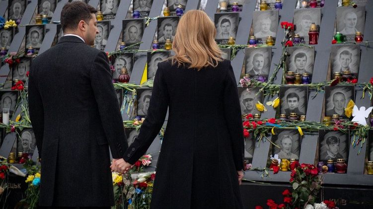 "Президент Украины Владимир Зеленский вместе с женой Еленой приняли участие в церемонии памяти Героев Небесной Сотни.