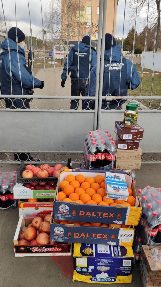 К санаторию в Новых Санжарах, где местные жители вчера протестами встретили эвакуированных из Китая украинцев, приехали переселенцы из Донбасса и привезли помещенным под карантин людям продукты.