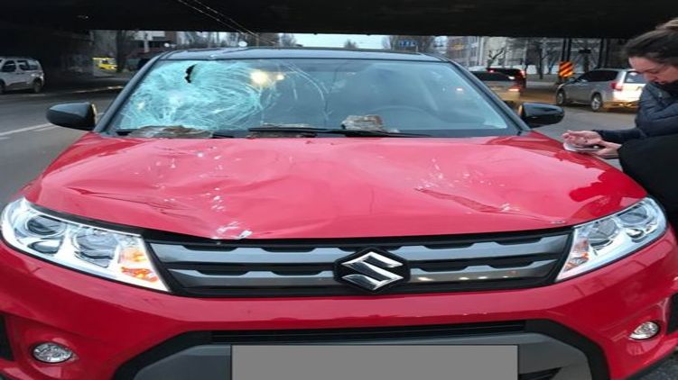 В Киеве кусок моста упал на проезжающий мимо автомобиль. Видео