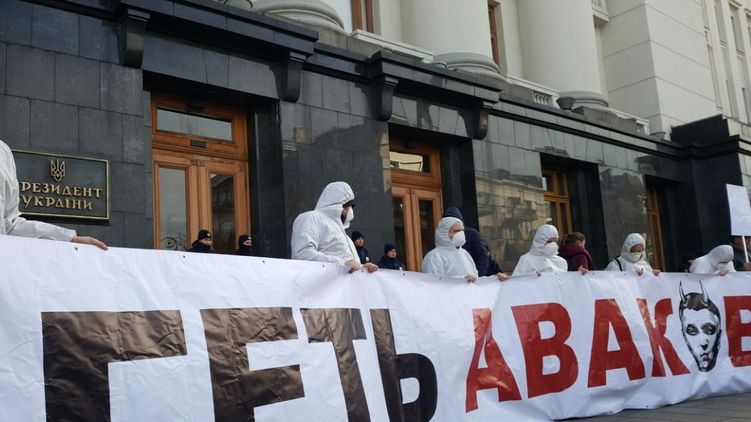"Он опасный, токсичный и должен уйти". Под офисом президента выступают за отставку Авакова. Фото: Громадське