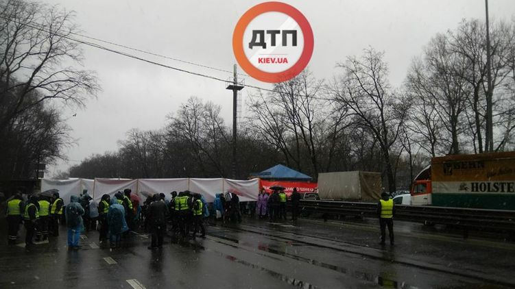 Под Киевом протестующие полностью перекрыли Одесскую трассу. За участие в митинге им заплатили по 150 гривен