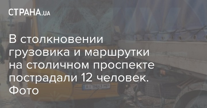 В столкновении грузовика и маршрутки на столичном проспекте пострадали 12 человек. Фото