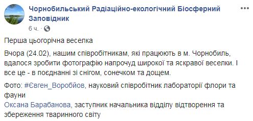 Их Чернобыльский радиационно-экологический биосферный заповедник выложил в Facebook 25 февраля.