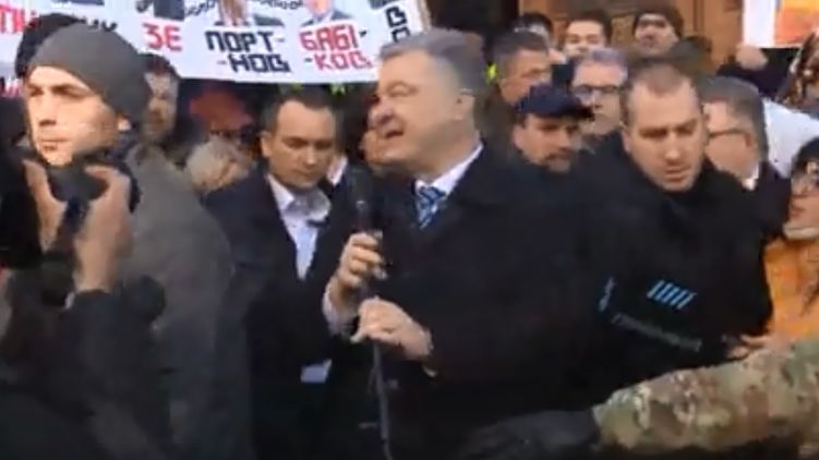 Порошенко перед допросом выступил перед СМИ. Фото: Скриншот