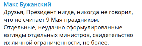 "Друзья, Президент нигде, никогда не говорил, что не считает 9 Мая праздником.