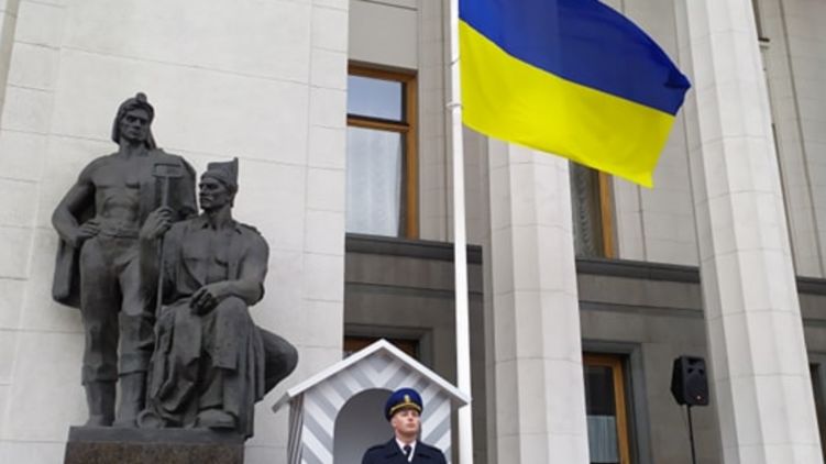 Сегодня возле здания Верховной Рады состоялась торжественная церемония поднятия флага.