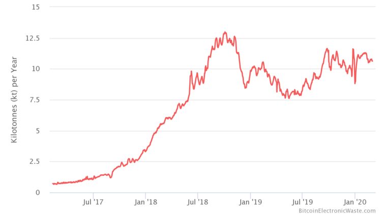 График роста электронных отходов от майнинга биткоина. Данные: исследование Алекса де Фриза