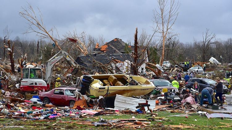 В американском штате Теннесси в результате двух мощных торнадо погибли не менее 25 человек. Спасатели продолжают поиск пострадавших.