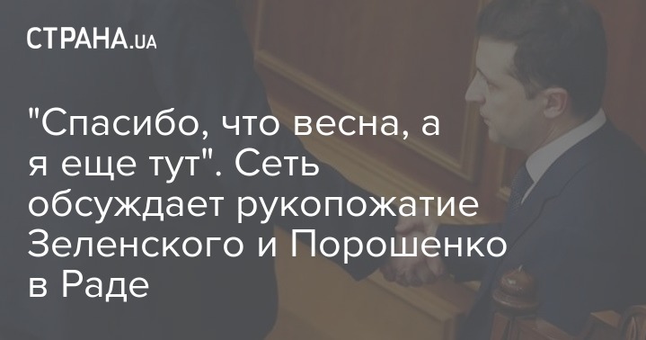 В соцсетях обсуждают рукопожатие Порошенко и Зеленского в парламенте 4 марта.