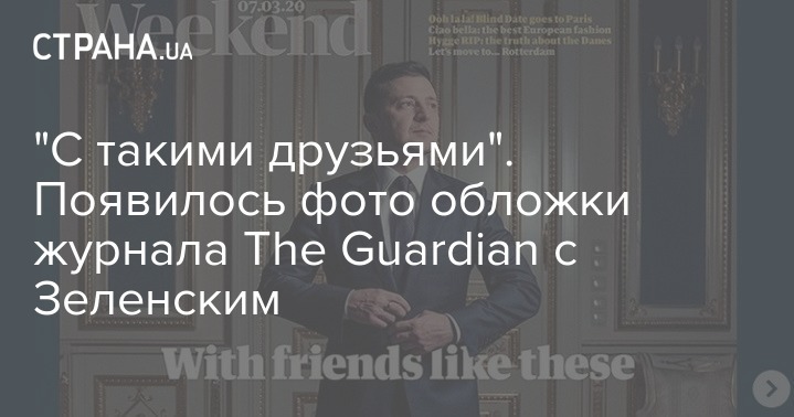 В сети появилось фото обложки журнала The Guardian Weekend от 7 марта 2020 года с президентом Украины Владимиром Зеленским.