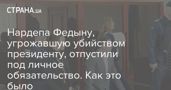 Федыне сообщено о подозрении в угрозе убийством президенту Украины Владимиру Зеленскому, совершенной в связи с его государственной деятельностью (ч. 2 ст. 28, ч. 1 ст. 346 Уголовного кодекса Украины). Рассмотрение дела состоится в 11:30 на ул. Владимирской, 15. По словам Федыны, прокуратура попросит избрать ей меру пресечения в виде личного обязательства.
