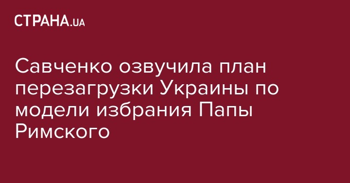 "На ближайших выборах народ выбирает 100 народных избранников, задача которых написать Конституцию Украины в закрытом режиме на разумно ограниченный срок по типу конклава при избрании Папы Римского", - сказала Савченко.
