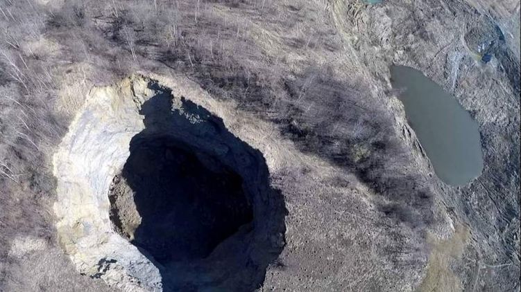 Новый провал по визуальным признакам составляет 150 на 50 метров. Периметр обвала стремительный. Глубина пропасти составляет около 100 метров.