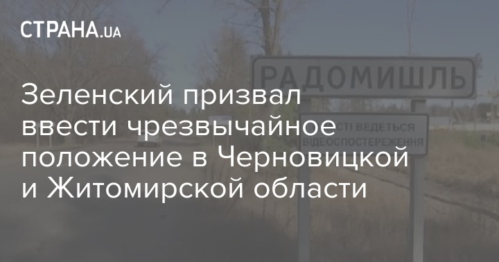 Президент Украины Владимир Зеленский призывает ввести чрезвычайное положение в Черновицкой и Житомирской областях, остановить весь метрополитен в Украине и транспортное сообщение между городами.