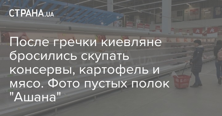После гречки киевляне бросились скупать консервы, картофель и мясо. Фото пустых полок "Ашана"