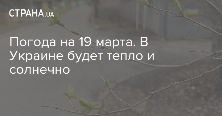 В четверг, 19 марта, в Украине ожидается солнечная погода без осадков. Днем воздух на всей территории прогреется до +14...+17 градусов. Об этом сообщает Укргидрометцентр.