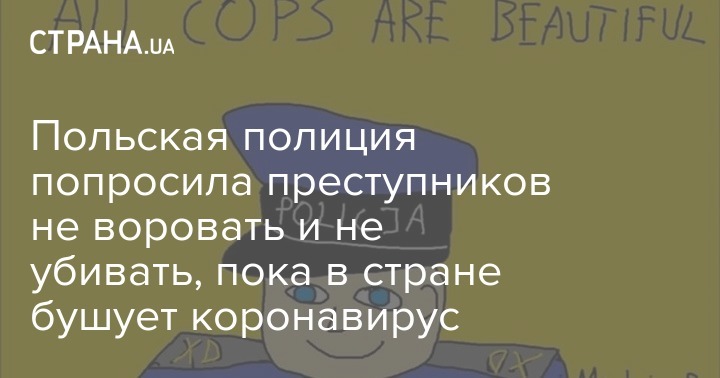 В Польше полиция обратилась к преступникам с необычной просьбой: на время борьбы с эпидемией коронавируса COVID-19 воздержаться от правонарушений. Правоохранители пообещали сообщить дополнительно, когда вновь можно будет начать совершать злодеяния.