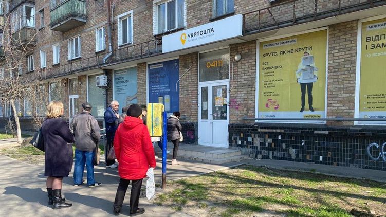 В Киеве возле отделений почты и банков выстраиваются очереди, внутрь пускают ограниченное число людей. Фото