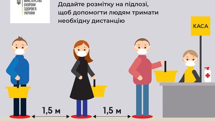 Безопасная дистанция в магазине составляет 1,5 м. Фото: Facebook/ moz.ukr