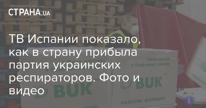 На опубликованных кадрах видно, как разгружают коробки с логотипом украинской компании "BUK" и ее слоганом - "Чистый воздух в любых условиях". В сюжете не было указано, какое количество таких респираторов закупила Испания и когда это было сделано.
