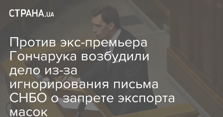 Специальная антикоррупционная прокуратура возбудила уголовное дело против должностных лиц правительства экс-премьера Алексея Гончарука: Кабмин в феврале не ограничил экспорт медицинских масок и других средств индивидуальной защиты, необходимых для борьбы с коронавирусом, несмотря на вероятные предупреждения от СНБО.