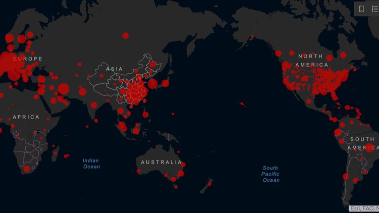 Распространение коронавируса по планете. Фото: coronavirus.jhu.edu