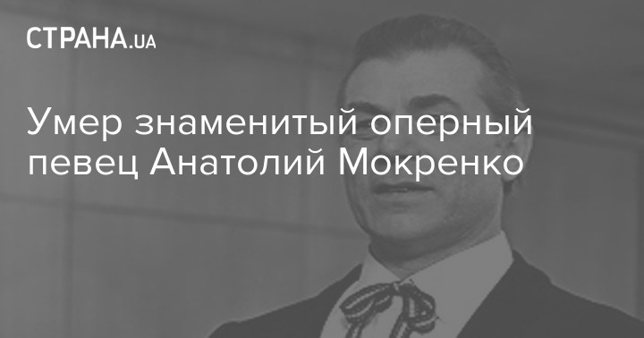 "24 марта 2020 отошел в вечность выдающийся оперный певец, народный артист Украины, лауреат Государственной премии имени Тараса Шевченко, генеральный директор и художественный руководитель Национальной оперы Украины им Шевченко (1991-1999рр.), профессор кафедры вокального пения Национальной музыкальной академии Украины им.П.И.Чайковского - Анатолий Юрьевич Мокренко", - говорится в сообщении.