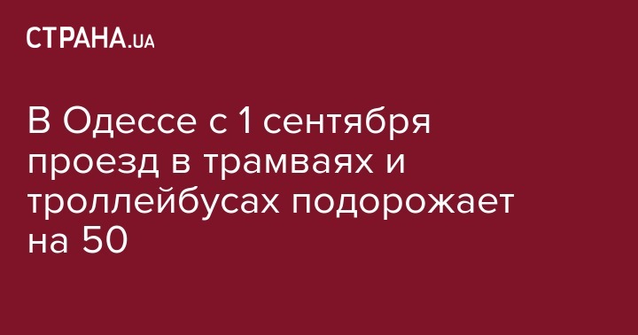 В начале осени проезд в городском электротранспорте в Одессе будет стоить уже не 2 гривны, а 3 гривны. Проезд в трамваях и троллейбусах по Одессе последний раз повышался с 1,5 до 2 гривен в июне 2015 года.