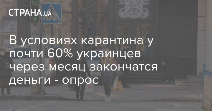 В условиях жесткого карантина, у 57% украинцев закончатся деньги на жизнь через четыре недели или меньше, 6,9% имеют сбережения на несколько дней, 6,3% - на полгода или больше.