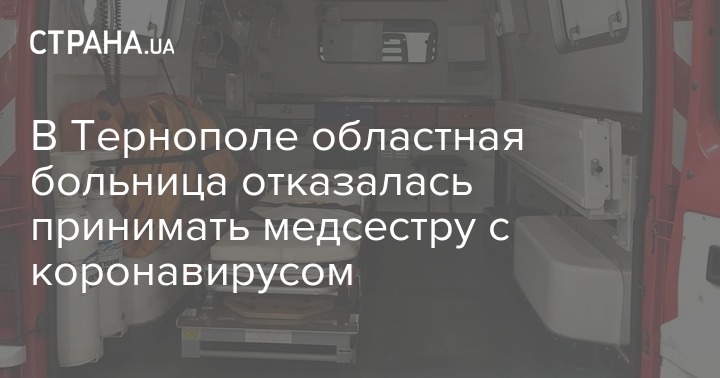 В Областной больнице Тернопольской области отказались перевозить инфицированную коронавирусом 41-летнюю медсестру из больницы Монстыриска, ссылаясь на отсутствие скорых для транспортировки, а также на то, что болезнь можно излечить на месте.